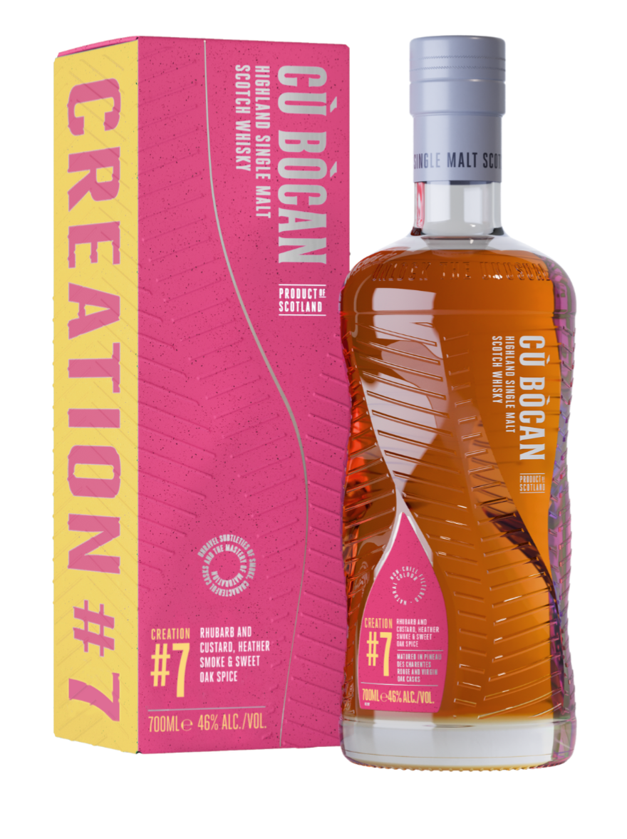 Creation #7 can be described in two words: RHUBARB + CUSTARD. Our anticipated seventh edition in the Creations series marries Pineau des Charentes Rouge casks and Virgin Oak casks with our lightly peated spirit, producing flavours of rhubarb and custard, heather smoke and sweet oak spice.