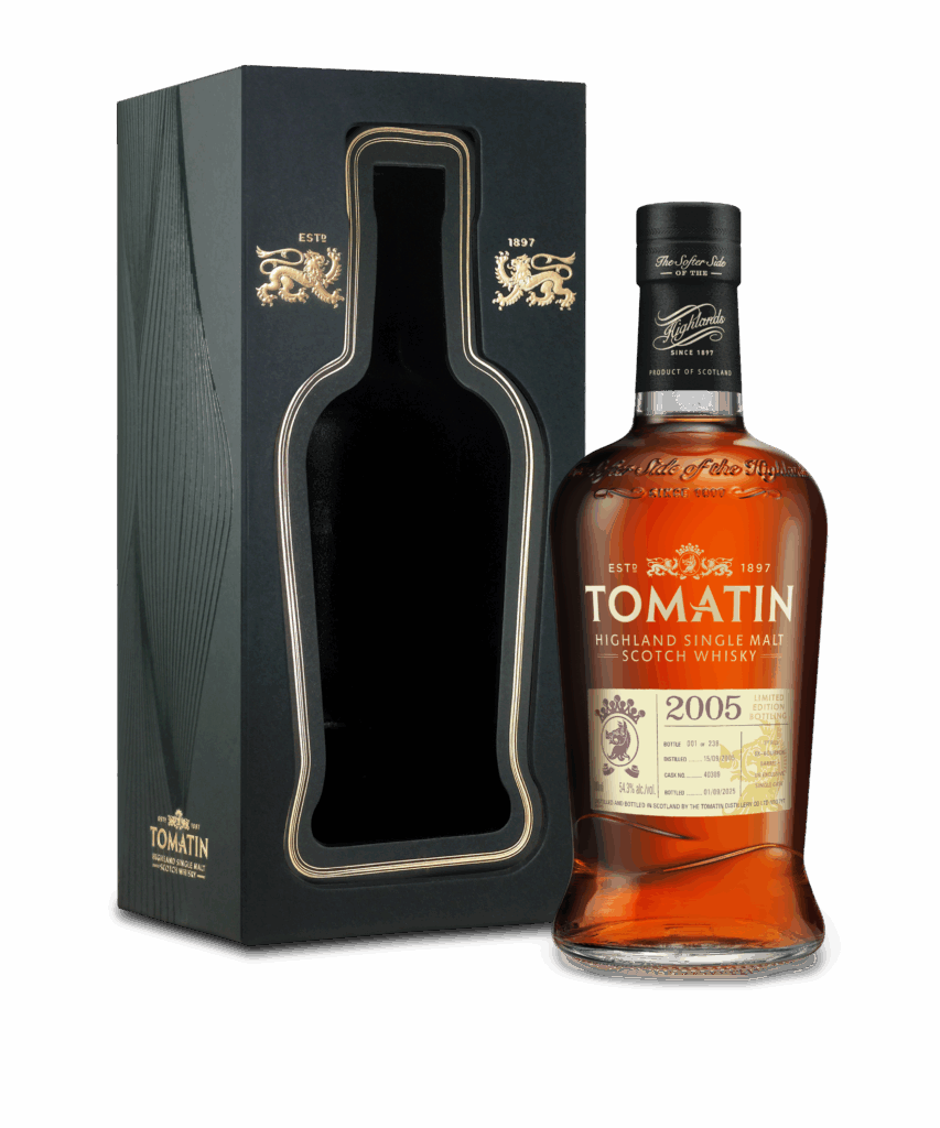 Unlike most Tomatin single malt whiskies which have matured in sherry, port or wine casks, this distinctive 2005 single cask edition is exclusively matured in a first-fill ex-bourbon cask, creating a whisky with a sweet, fruity and malty flavour profile and allowing the tropical notes of the spirit to shine through.